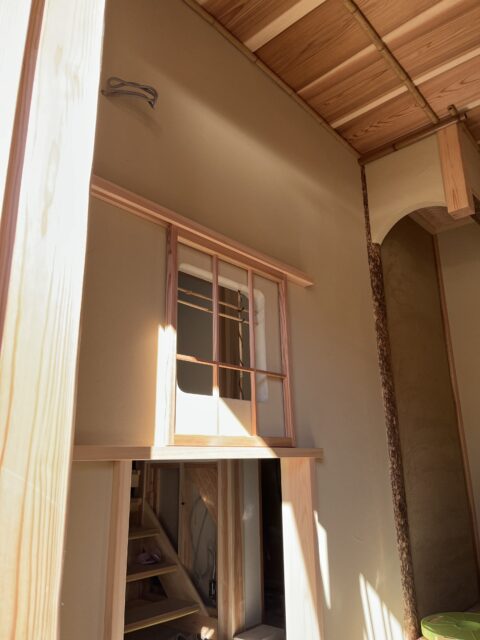 躙口の上には下地窓があり、そこにも障子を取り付けました。