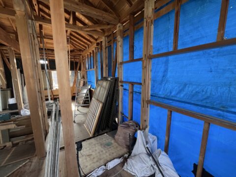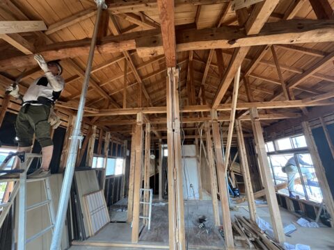 1階に住みながらの改修工事ということで、屋根や構造体を全て取り払ってから