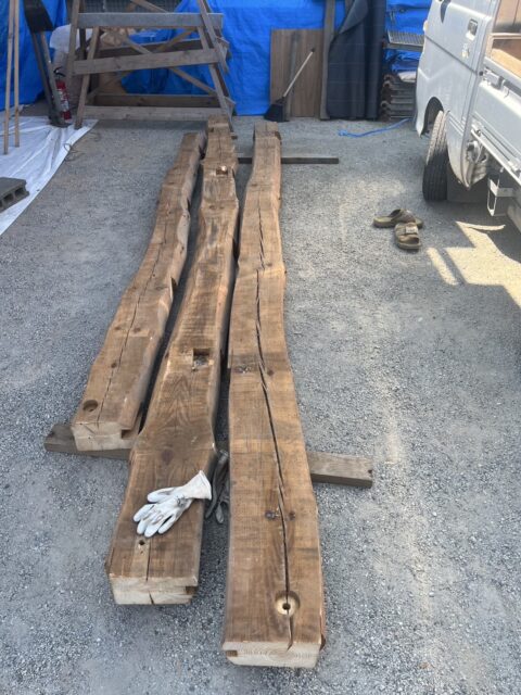 ですので、解体と並行して、新しい小屋組の材料は別に用意し、加工しておきます。